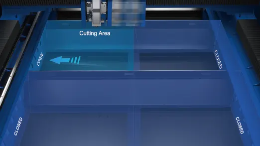 La zona de eliminación de polvo está equipada con múltiples compuertas de alta estanqueidad, que se abren y cierran de forma automática e inteligente siguiendo el trabajo de corte, logrando un buen efecto de ventilación y eliminación de polvo.