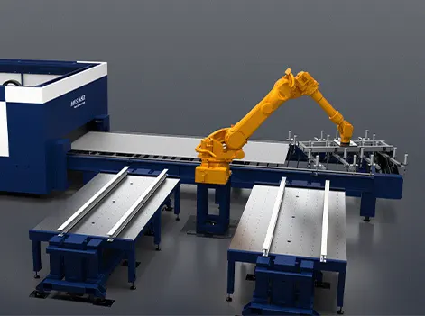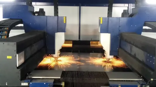 ● El corte láser dinámico asíncrono con dos cabezales permite dar forma a piezas complejas a la vez. El software de anidamiento calcula la ruta de procesamiento adecuada para maximizar el aprovechamiento del material.