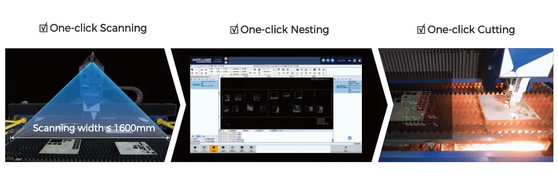Solución inteligente para el procesamiento de material remanente, basada en tecnología de inspección por visión automatizada, que permite posicionar cualquier número de geometrías de piezas en la hoja de remanente. El área de procesamiento de remanentes cubre toda la mesa de trabajo y admite el escaneo simultáneo de múltiples placas con un reconocimiento preciso y único del contorno remanente. Esto revoluciona los métodos tradicionales e ineficientes de procesamiento de remanentes, optimizando rápidamente la producción y optimizando el uso del material..